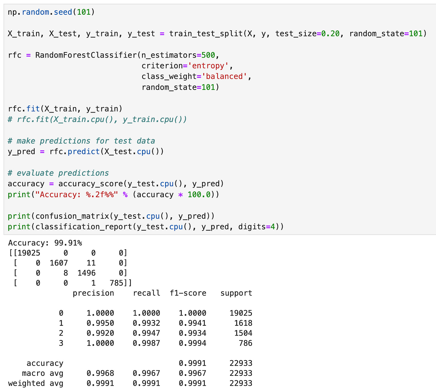 Okay, so we’ve seen how our pytorch and XGBoost classifiers perform, but what about good ol’ Random Forest?